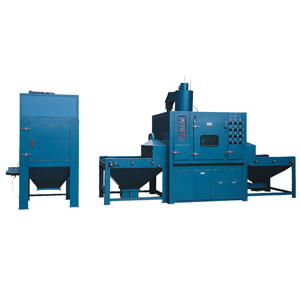 采用三角皮帶輸送工件,不會積砂,皮帶速度配合噴砂工藝要求可實現(xiàn)變頻調速; 每支噴槍角度可自由調節(jié)槍架實現(xiàn)自動變頻搖擺,并可定點噴砂,靈活適用性廣; 采用先進的上旋風分離系統(tǒng)配置,粉塵分離效果好,噴砂效率高;