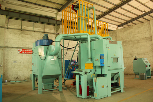 五 砂料的回收 噴砂后的砂料及粉塵通過風力循環(huán)送至儲砂斗。主回砂管由特制的高耐磨無縫鋼管制作而成,管內襯托高耐磨的硅膠板,可以保護管道的磨損。回收方式采用上進風,下抽的形式,有效的把砂料回收到儲砂斗內,回收效率可達到到99%。